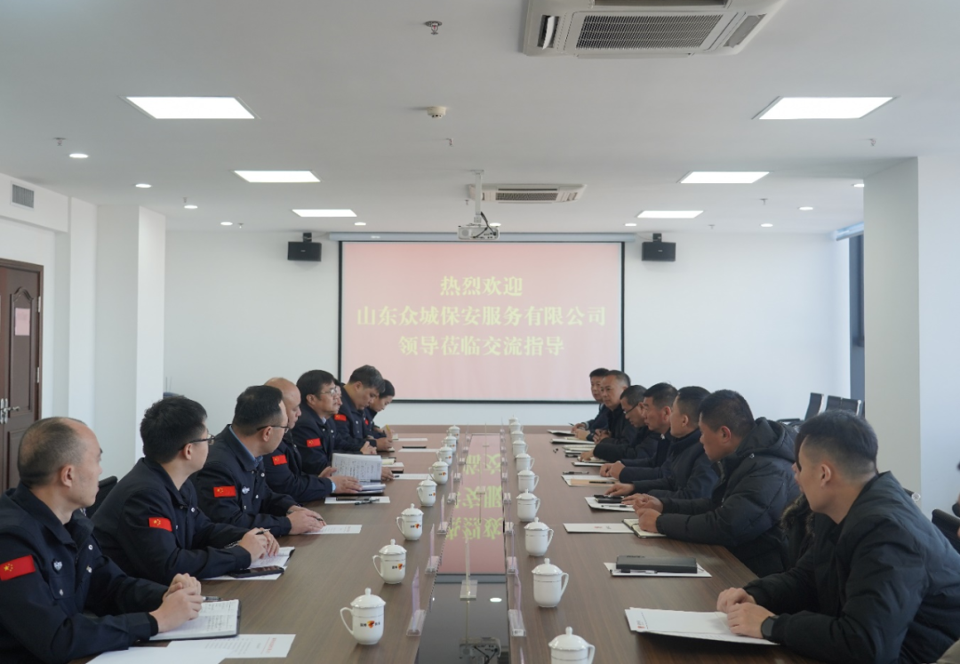 近日,山東眾城保安服務(wù)有限公司黨委書記、董事長杜軍一行10人來我公司考察交流,公司黨委書記、董事長付志欣及相關(guān)領(lǐng)導(dǎo)陪同。
