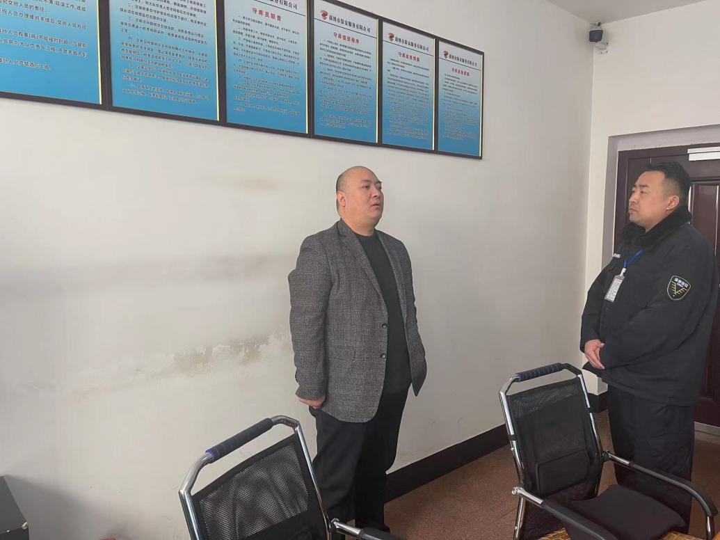 近日,公司黨委成員、副總經(jīng)理丁德鵬一行到金融護衛(wèi)中心桓臺大隊、高青大隊對“春節(jié)”期間各項管理工作進行專項檢查,金融護衛(wèi)中心副經(jīng)理喬文彬陪同。此次專項檢查旨在進一步提升市保安公司“春節(jié)”期間大隊勤務(wù)管理及槍支彈藥日常使用安全,確?!按汗?jié)”期間全市金融押運業(yè)務(wù)正常運行,防范和杜絕槍支彈藥相關(guān)的安全隱患。保障在當前復(fù)雜的安全形勢下,各守押大隊在“春節(jié)”期間大隊勤務(wù)管理與槍支彈藥管理工作不出問題。